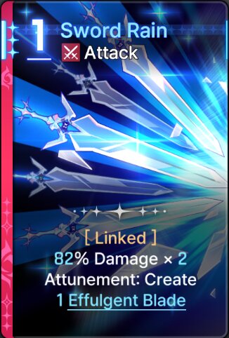 ![]() | [Linked] 80% Damage x 2. Attunement: Create 1 Effulgent Blade. | ||||