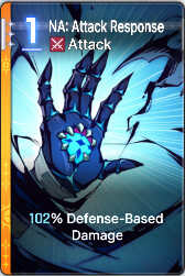 Passive Effect: The assigned combatant’s Defense is increased by 8%.If the combatant ends the turn without using an attack card, Heal 30% at the start of the next turn.