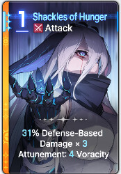 Shackles of HungerOne of Narja’s damage cards that can provide her with a decent amount of Voracity if the Attunement effect activates.