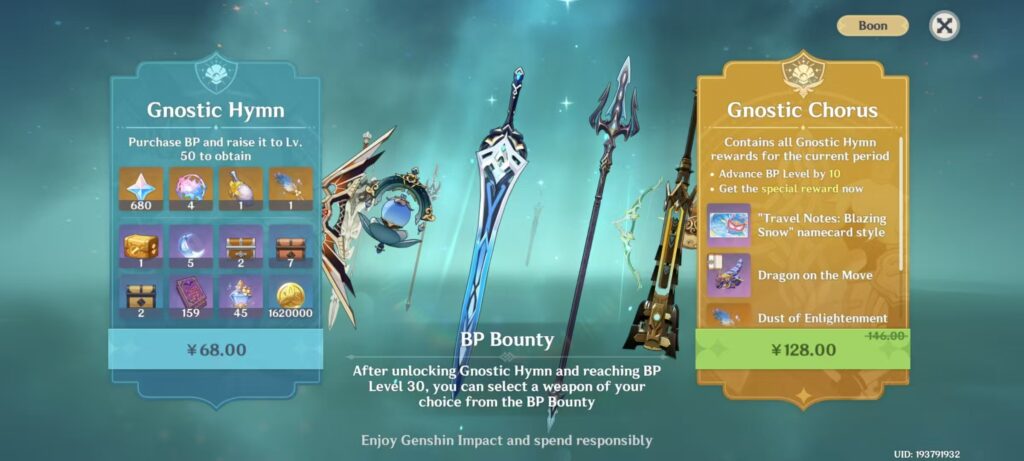 Players which purchase the Battle Pass can obtain additional Intertwined Fates, Primogems and Character Cultivate Materials.