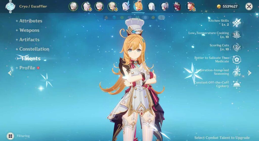 Escoffier is a powerful Support Character for Hydro and Cryo DPS. Therefore she is a critical part in Hydro/Cryo Teams.