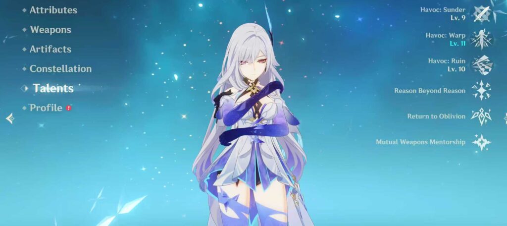- Skill – Top priority cause most of her DMG comes from the special Cryo Infused NA.