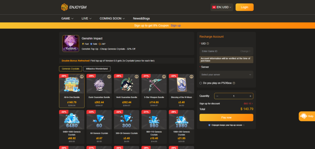 That’s all about Skirk’s Team-up choices. We really suggest you to pull her and her teammates to team up this Cryo DMG team to dominate the game, use Enjoygm to top up Genesis Crystals to prepare for your Cryo Team!