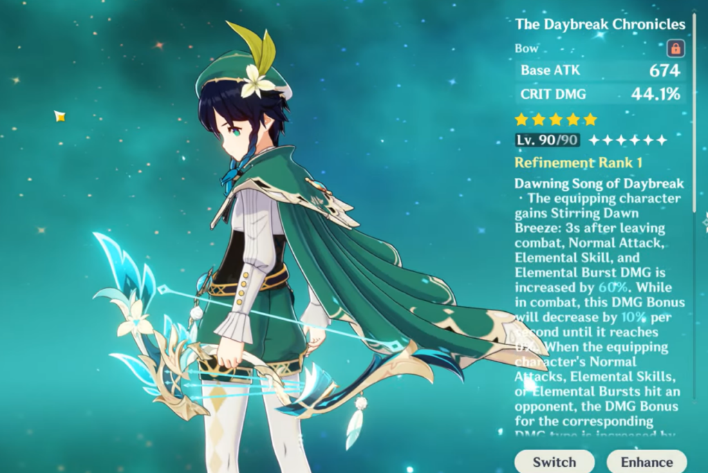 You can focus on CRIT weapons with Venti to improve CRIT stats and ATK. With that, his signature transforms into a bow and these are the weapons we recommend with him.