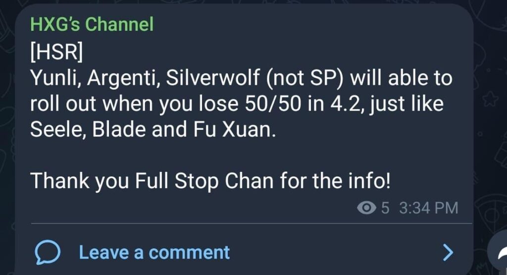 The characters being added to the summoning pool in version 4.2 Update patch according to leaks includes: the 5-star Quantum Nihility Character Silverwolf, the 5-star Physical Erudition Character Argenti and the 5-star Physical Destruction Character Yunli.