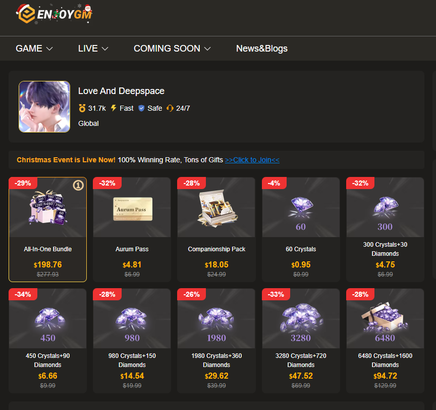 Ultra-Cheap Prices: Enjoygm offers unbeatable discounts on Love and Deepspace diamonds—far lower than official top-up rates! Get 15,290 diamonds for less, making your top-up more cost-effective.