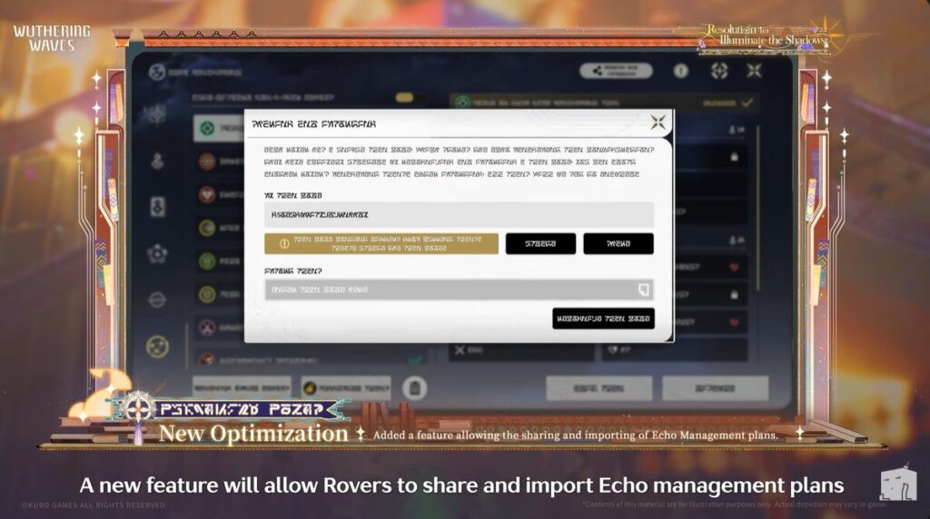 – Improvements for Echoes System: Players can now choose a specific Echoes Sets before synthesizing Echoes, allowing players to obtain specific Echoes for specific set bonuses. In addition, players can now also copy other players’ Echoes management plans to apply to their own.