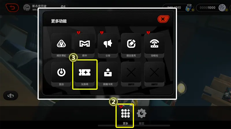注意:若在行動裝置上未看到遊戲內兌換選項,請嘗試使用網站兌換。