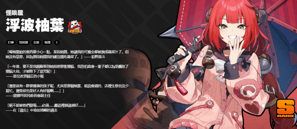 • 輸出循環:柏妮斯噴火疊異常→ 柚葉強化特殊技染色→ 柳站場輸出+強化特殊技打異放→ 切回柏妮斯補異常→ 重複。