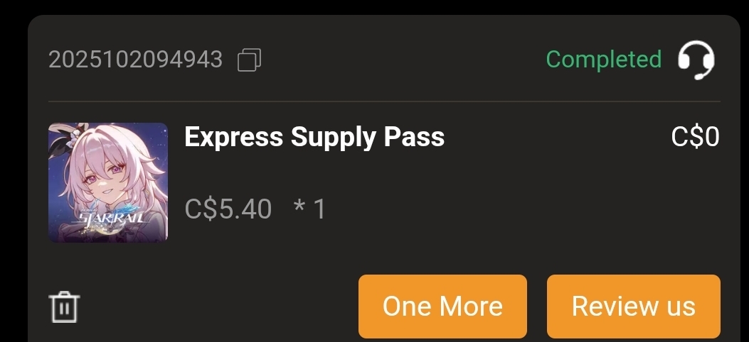 Completed INSTANTLY. My go to top up site is enjoygm.com
