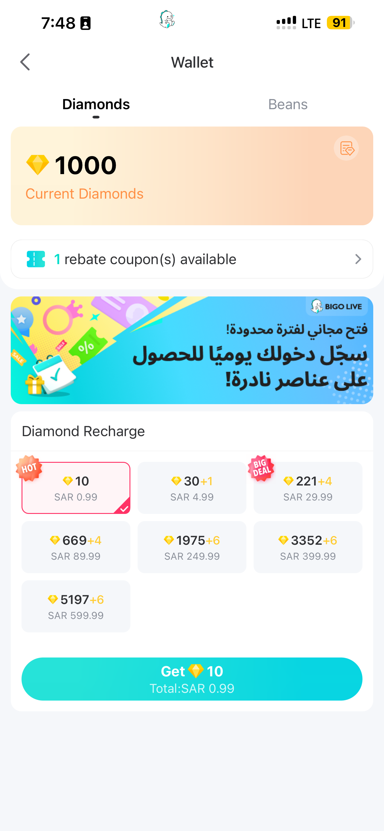 Sometimes, we may offer some tasks or challenges for users to get Bigo diamonds as rewards.