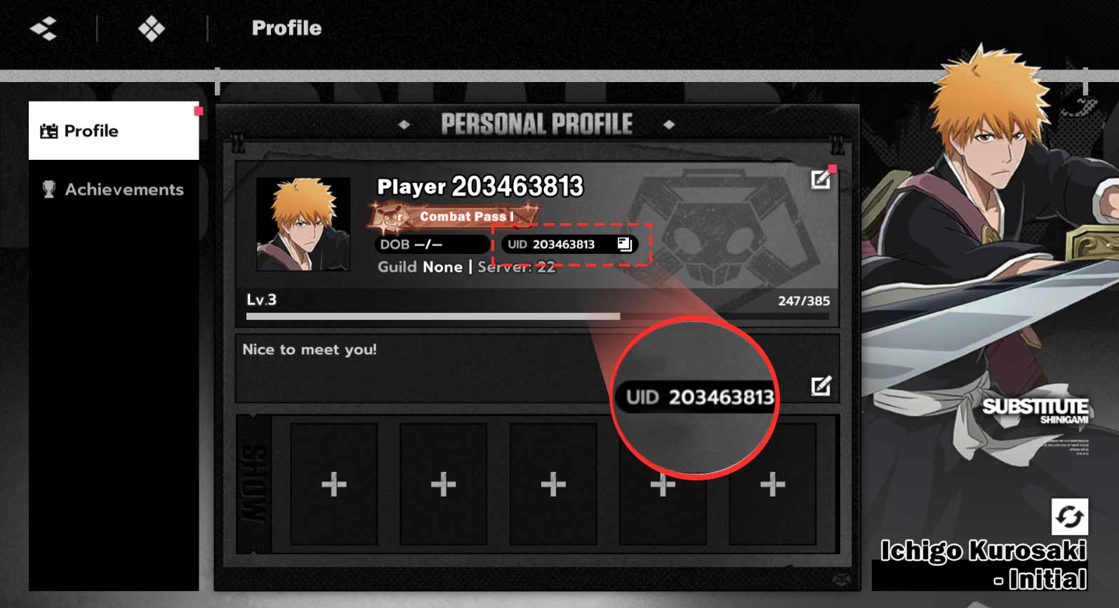 Open your profile page in BLEACH Soul Resonance, your game UID can be found near your avatar.