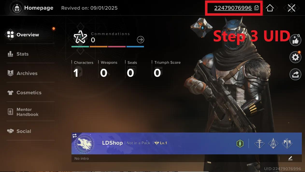 5、Your Destiny: Rising UID will be displayed at the top of the profile page.
