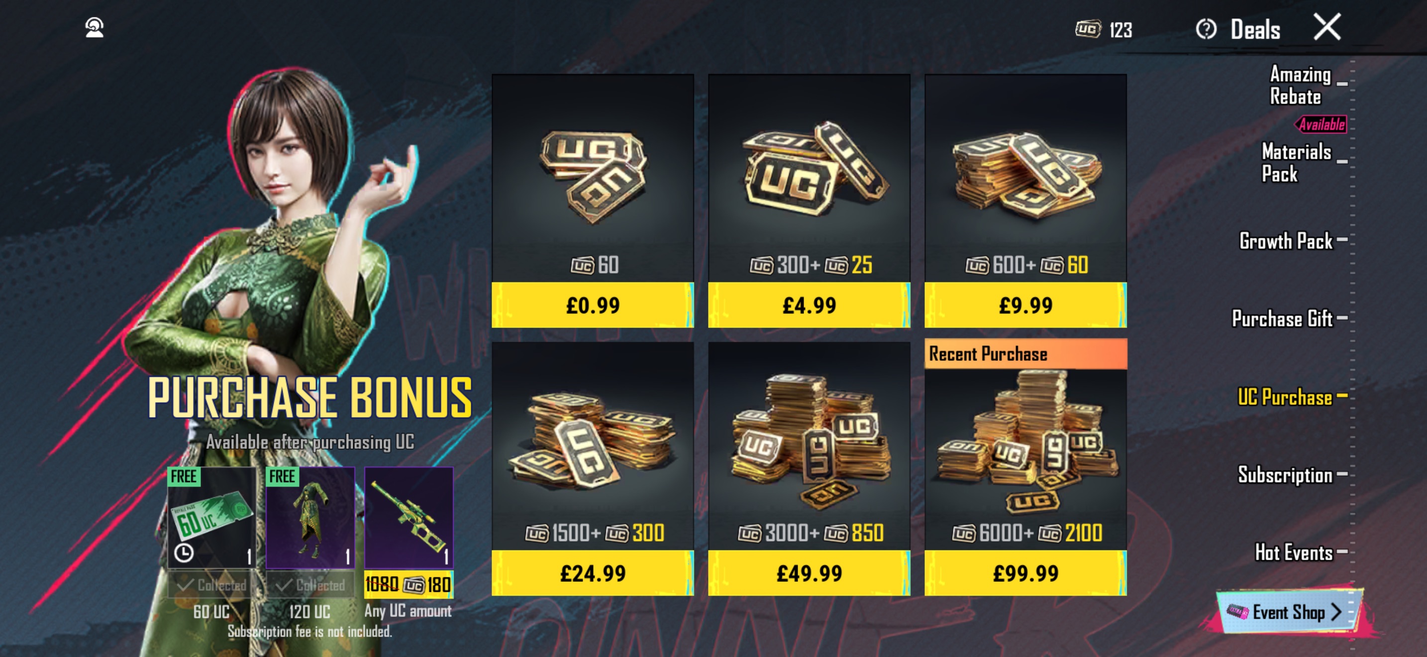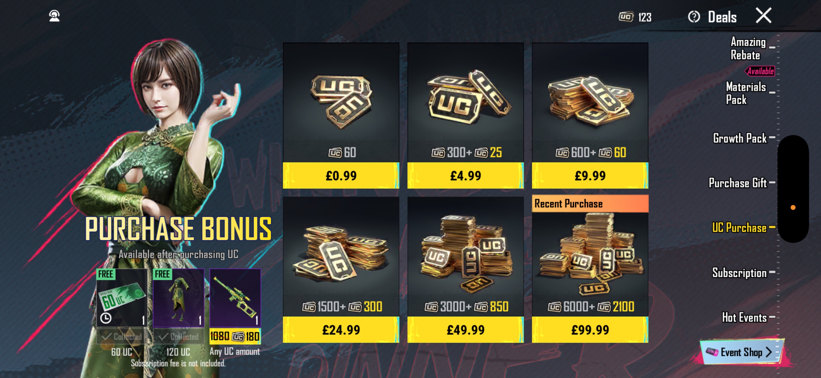 - 600 plus 60 bonus UC for 8.69 dollars instead of 9.99 dollars