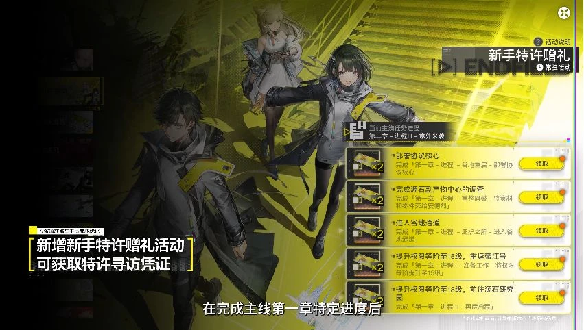完成主線第一章指定進度,解鎖新手特許十連,老玩家可直接領;