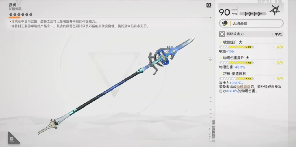 回來看驍勇就遜色很多,敏捷和物理傷害是一樣的。但是最後這裏就是提供攻擊力。然後當你造成物理異常的時候,你自己並不會獲得一個持續的buff,而是單次的打一個比較高的傷害。從總輸出量來說應該是差了很多的。