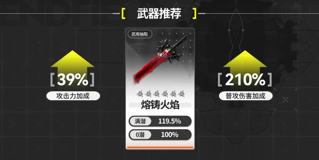 萊萬汀作為主打普攻傷害的主c角色,優先還是推薦專武【熔鑄火焰】。不僅能為自身提供39%的攻擊力加成,還能提供210%的普攻傷害加成。