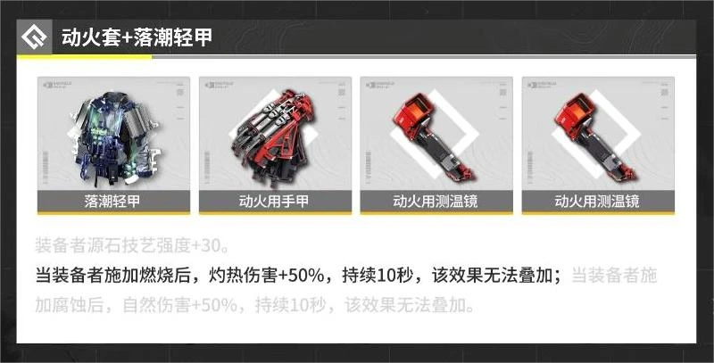 目前公測版本有熔鑄火焰的話,更推薦動火套。因為萊萬汀的強化戰技會給敵人施加燃燒,可以直接觸發動火套效果,10秒內增加50%灼熱增傷。動火套主要還是對群的時候,才能保證一個比較好的覆蓋率。