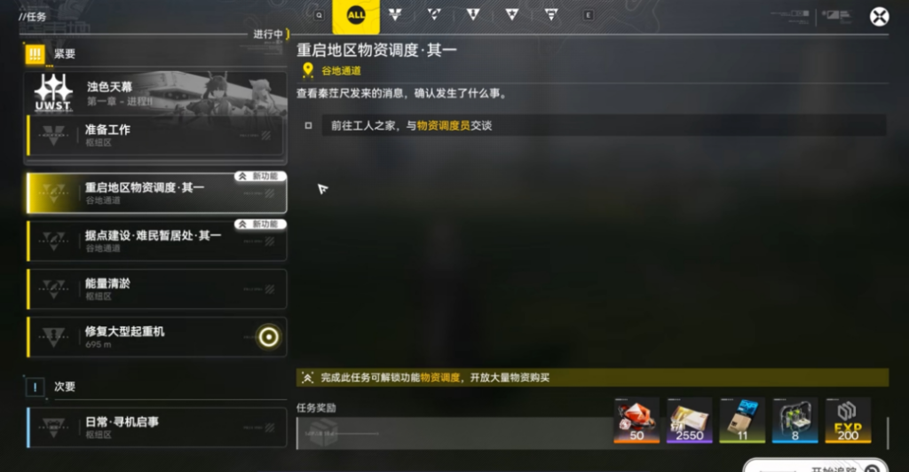 ● 當角色達到14級並完成主線任務「重啟地區物資調度」後,該任務將自動解鎖!