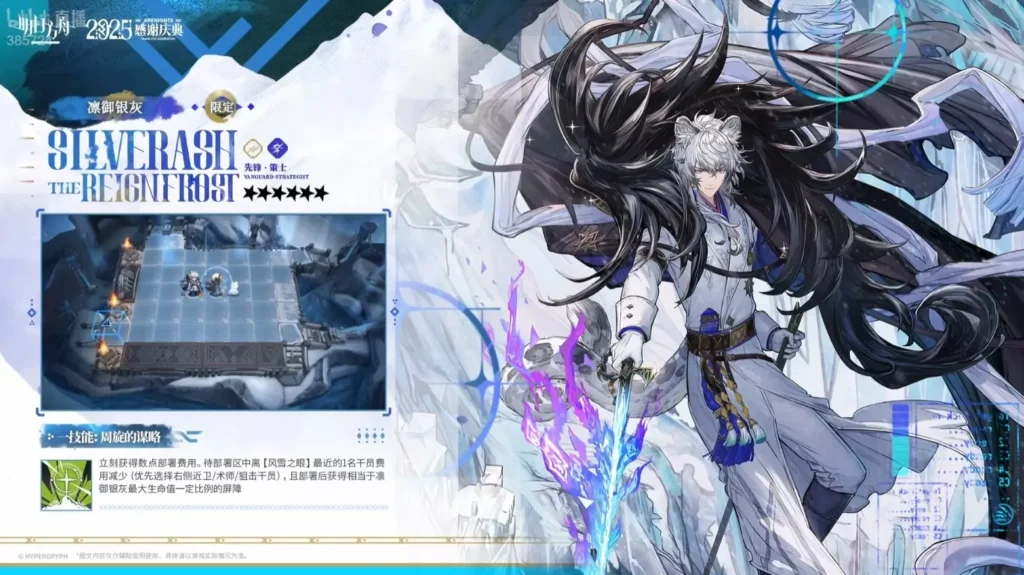 凜禦銀灰先鋒中的策士,能夠圍繞自己的特殊部署單位風雪之眼,為己方待部署區域的幹員,減少費用和特殊強化。同時,可以強化己方謝拉格陣營的幹員。