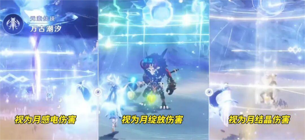 - 「超月綻放」:哥倫比婭+伊涅芙/久岐忍+納西妲+菈烏瑪;