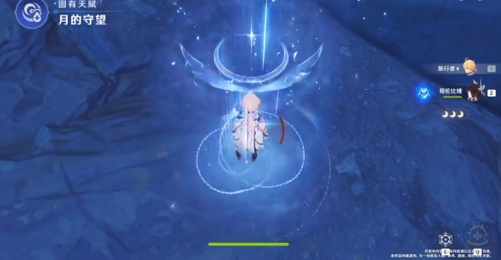 - 【3種月曜反應傷害】期間隊伍觸發月曜反應積攢引力值(角色背後月亮光環顯示積攢情況),滿額觸發1次協同攻擊。攻擊類型取決於引力值貢獻最高的月曜反應,月感電、月結晶為單次傷害,月綻放造成5次傷害。隊伍只有哥倫比婭1個挪德卡萊角色時,通過元素搭配可打出3種月曜反應傷害,應對多種挪德卡萊機制怪,如霜夜巡天靈主的月曜次數機制、歷經百戰火刃突擊隊員的感電護罩、歷經百戰岩居蟹的飛天護盾等。