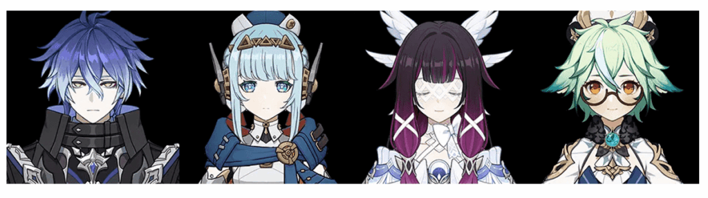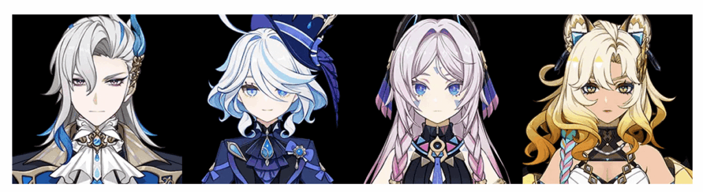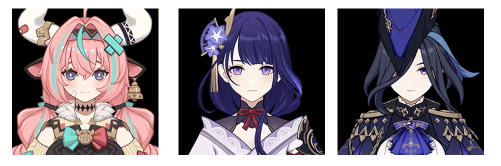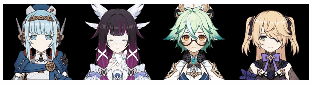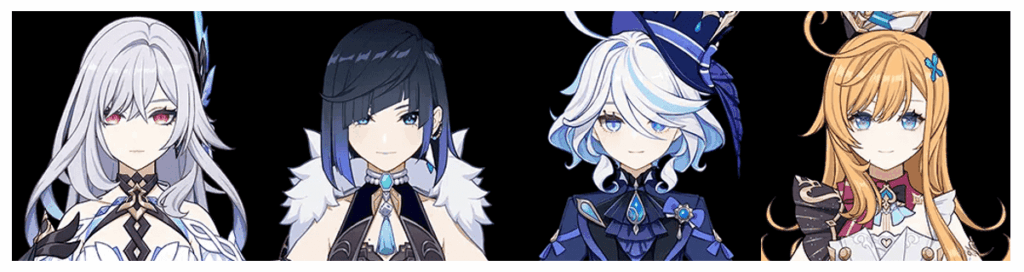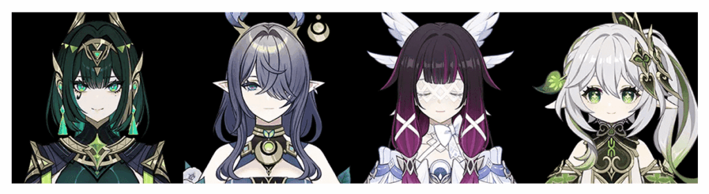- 月綻放:奈芙爾 + 菈烏瑪 + 哥倫比婭 + 草神 / 迪奧娜 / 砂糖