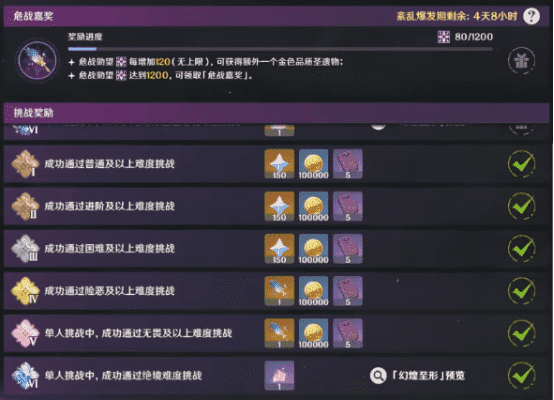月之四幽境危戰獎勵一覽