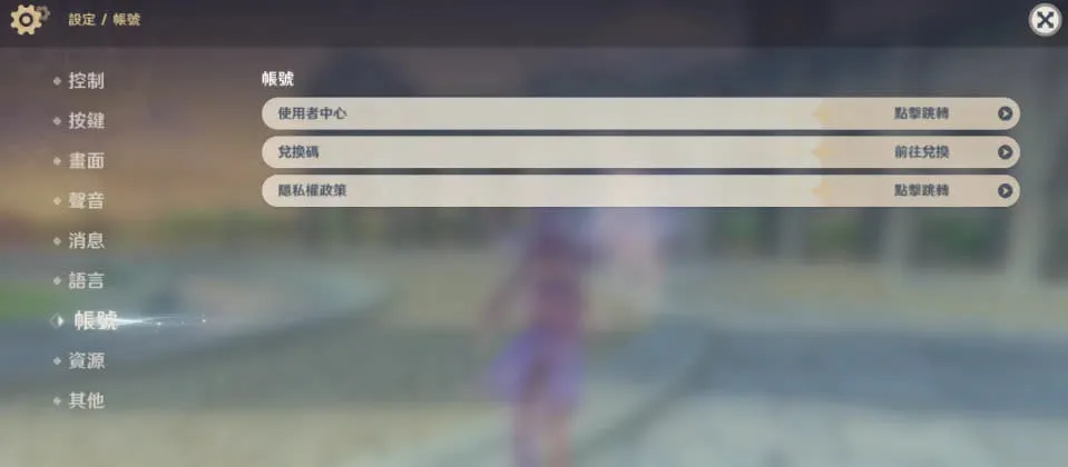 3.選擇「帳號」→「兌換碼」;