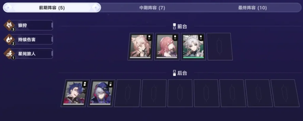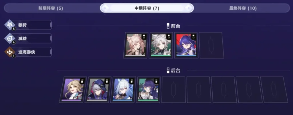 2-1升7級找5狼狩,其他羈絆可根據情況來,主要搭配群攻、減益。沒必要強行7狼狩,裝備夠多的情況下可以不開,有狼狩星徽會更加爽玩。如果打完整個一、二位面但一個鑽都沒出的話,狼只需要養到5級就可以不養了,直校換上減益。(一般不會這麼極端,正常都能找到鑽)。