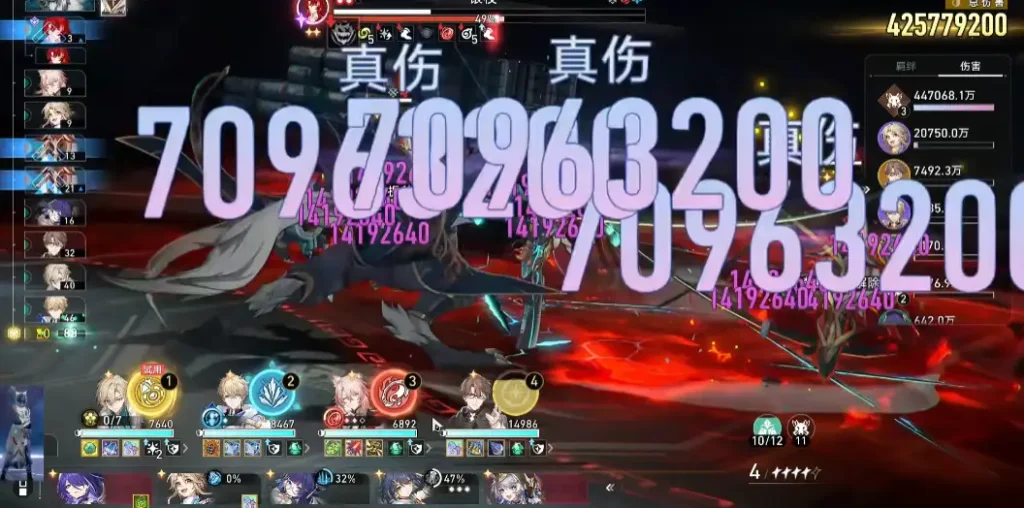 因爲全隊一點傷害都沒,只有狼王輸出,3-1和3-2是隨便打的,但3-3要開始組減益才能打得過。3-5低難度遭遇和boss關要瓦爾特才能打得過。最終boss只要不是盜火都能打(打盜火隊伍裏有人要有傷害)。如果對面拿到特別多的加生命和回血詞條的話,就需要你補個10多億左右的傷害才能打完。黃泉加瓦爾特260行動值打10多億還是很簡單的。