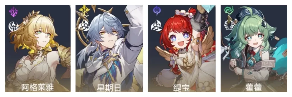 阿格萊雅的大招迴圈依賴星期日提供的百分比回能,開局啟動和戰鬥中都少不了星期日;阿格萊雅的疊層機制需拉條輔助提升出手和暖機效率,而星期日最大優勢是可同時拉條憶師和憶靈;星期日的buff是單體拉條輔中覆蓋率最高的,能持續、穩定提供戰鬥增益,還可完美覆蓋憶師、憶靈。