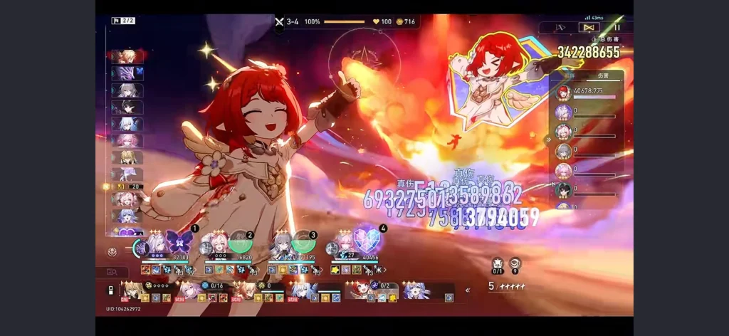 • 陣容:白厄 + 星期日 + 昔漣 + 知更鳥 + 刻律德菈 + 花火 + 停雲;