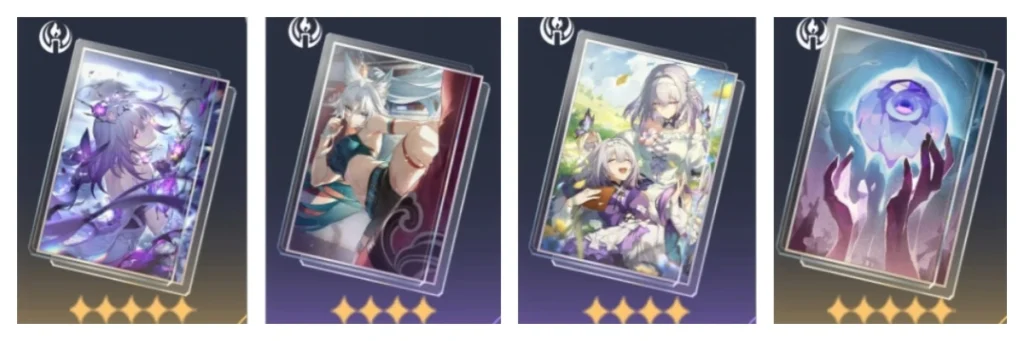 - 「花兒不會忘記」:同為大月卡光錐,能提供暴傷加成、憶靈造成傷害爆傷額外提高屬性加成。相比月卡「多流汗,少流淚」光錐收益稍微低一點,如果使用「多流汗,少流淚」暴擊溢出較多,可選擇使用此光錐。
