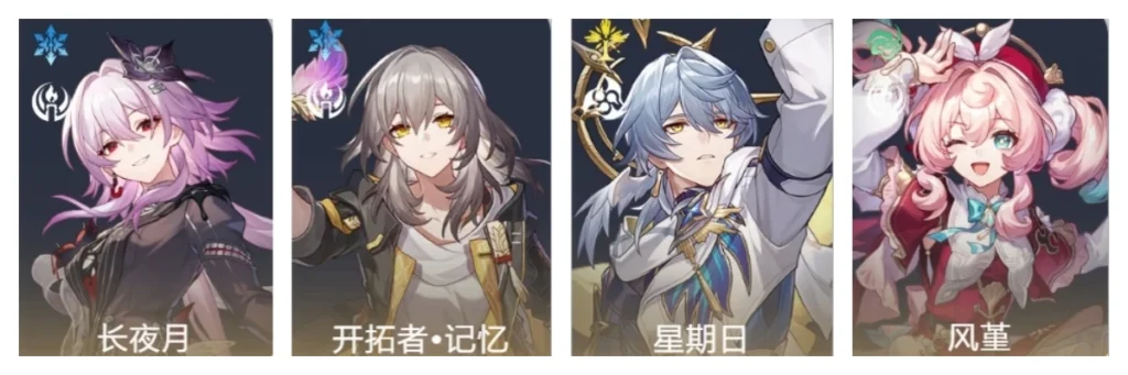 長夜月作為主輸出,利用記憶開拓者和周日增益,頻繁行動攢「記憶痕跡」層數,使憶靈記憶更頻繁行動打擊敵人。風堇作為主要生存位,其提供的額外憶靈強化長夜月天賦效果,提升其最大生命值。