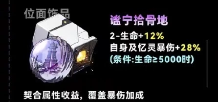- 內圈:謐寧拾骨地2件套(生命上限+20%,暴傷+28%)。