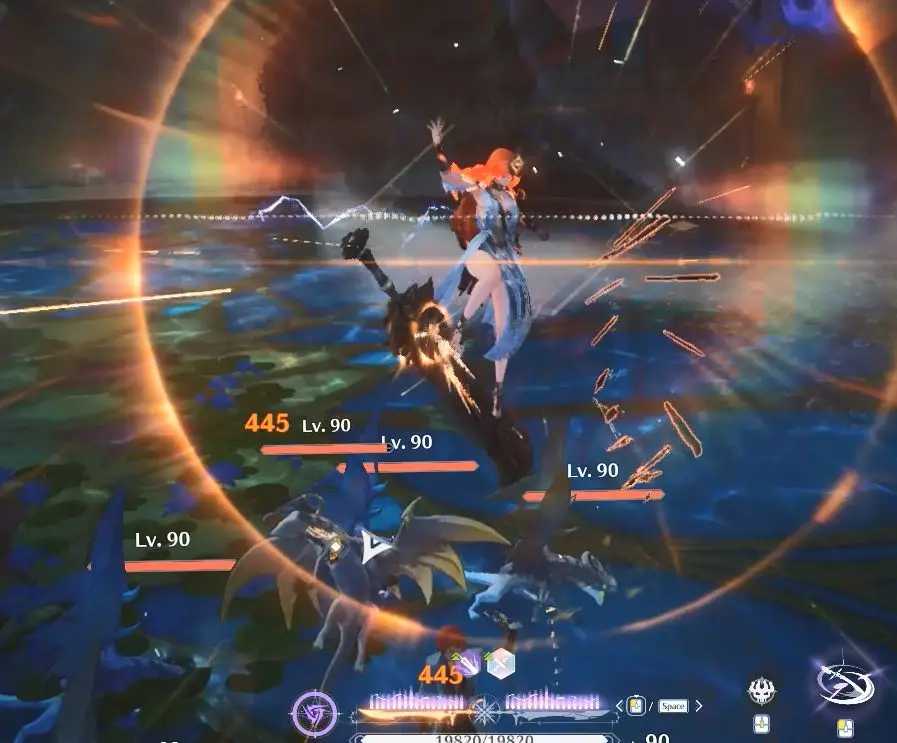 - 權柄(紅色圈):上限100點,通過普攻和共鳴技能積攢。滿權柄後釋放“三連擊”(迅擊-躍空-落襲),造成高額傷害並獲取1層“威懾”。
