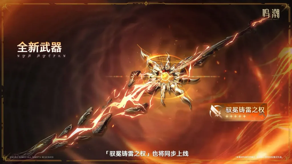 「馭冕鑄雷之權」:攻擊提升12%。施放變奏技能或共鳴技能時,重擊傷害提升20%,持續15秒;自身獲得護盾時,重擊傷害無視目標7.2%防禦,每0.5秒可生效1次,可疊加5層,持續7秒。