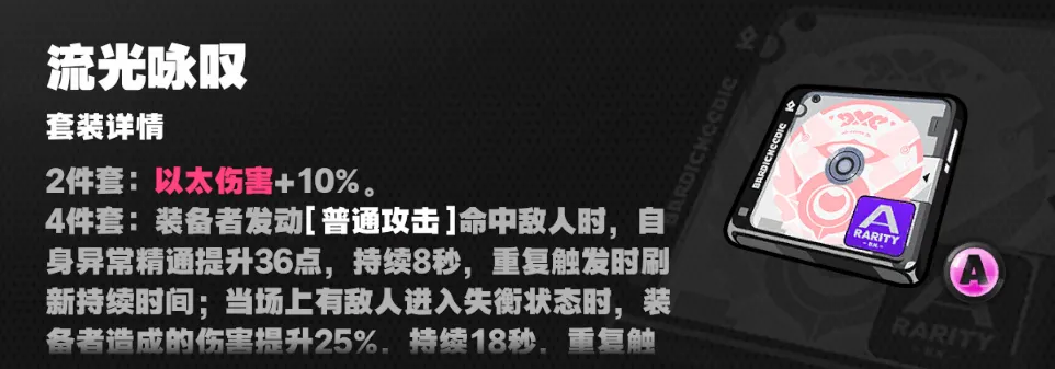 2.5版本有一個新驅動盤流光詠嘆,2件套加以太傷害,4件套加異常精通,肯定就是愛芮的驅動盤了。