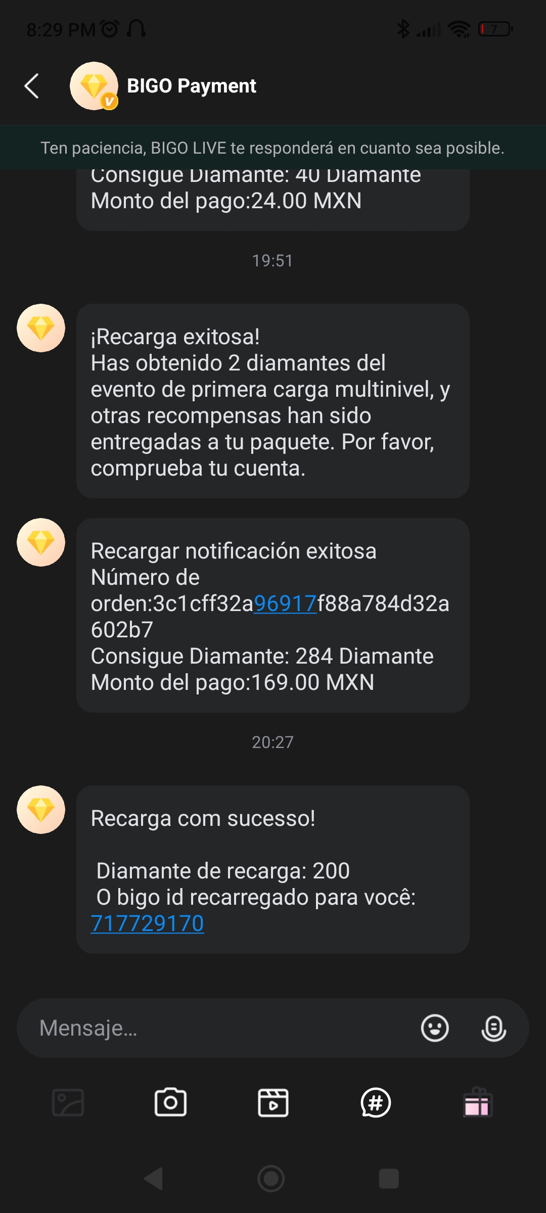 After payment, diamonds will be credited to your Bigo Live account within a short time (usually a few minutes). Open the Bigo Live app and check your balance under the "Me" section.